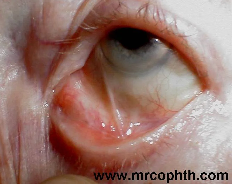 Symblepharon is an external eye finding in which an adhesion forms between the palpebral conjunctiva and bulbar conjunctiva (1). There are many causes of symblepharon, which is typically a response to trauma or inflammation. In no particular order, here are some of those causes: